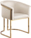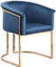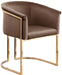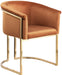 Enjoy body-hugging comfort at every meal with this Tierra velvet dining chair. Rich velvet covers the seat, arms and back of this comfortable yet beautiful chair. The frame is made from durable metal for resilient, long-lasting use, and it features a brushed brass finish for a look that's both modern and elegant. Pair it with the table of your choice for a modern look in your dining room space.