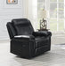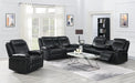 Black Gel Leather, & Manual Motion Recliners, Pillow Top Arms and Headrest, & Cup Holder Console with Storage, Sinuous Spring Support System, Reenforced Steel Reclining Mechanism, Power Outlets, & USB Ports, Drop Down Cup Holder, & Hidden Storage Compartment in Sofa, Black Gel Leather, Manual Motion Recliner, Pillow Top Arms and Headrest, Sinuous Spring Support System, Reenforced Steel Recliner Mechanism, Backs Detach for Easy Delivery
