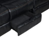 Black Gel Leather, & Manual Motion Recliners, Pillow Top Arms and Headrest, & Cup Holder Console with Storage, Sinuous Spring Support System, Reenforced Steel Reclining Mechanism, Power Outlets, & USB Ports, Drop Down Cup Holder, & Hidden Storage Compartment in Sofa, Black Gel Leather, Manual Motion Recliner, Pillow Top Arms and Headrest, Sinuous Spring Support System, Reenforced Steel Recliner Mechanism, Backs Detach for Easy Delivery