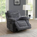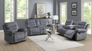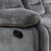 Gray Chenille Fabric, Stainless Steel Cup Holder Inserts, Pillowtop Arms & Headrest, Hideaway Drop Down Table, Manual Reclining with Side Pull Tab, Reenforced Steel Reclining Mechanism