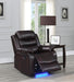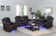 Brown Gel Leather, & Underlit LED, Motion Manual Reclining, & Drop Down Table, Storage Console, & Pocket Coil Cushions, Coordinated Stitching, Pillow Top Arms and Headrest, Backs Detach for Easy Delivery, Brown Gel Leather, Underlit LED, Motion Manual Recliner, Pocket Coil Cushions, Coordinated Stitching, Pillow Top Arms and Headrest, Backs Detach for Easy Delivery