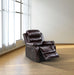 Chocolate Brown Gel Leather, Dual Manual Reclining, Drop Down Table, & Storage Console, Pocket Coil Cushions, & Coordinated Stitching, Pillow Top Arms and Headrest, Backs Detach for Easy Delivery, Chocolate Brown Gel Leather, Pocket Coil Seat Cushions, Pillow Top Arms and Headrest, Coordinated Stitching, Side Pull Tab, Back Detaches for Easy Delivery