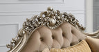 Hardwood Constructed Frame, Button Tufted Accents, Hand Carved Traditional Accents, Brown/Blue Seat Cushions, High Density Cushions, Multi-Accent Pillow, Champagne Color Trim Accents, Coordinate with T197 Collection