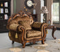 Light Brown Luxurious Material, Roll Arm, Hand Carved Wood Trim Accents, Subtle Pattern Cushion Design, High Density Foam Cushion Seating, Hardwood/Plywood Mix Construction