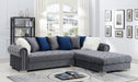 Navy Blue Luxurious Velvet, Coordinating Scatter Back Cushions, Faux Fur Accent Pillows, Double Nail Head Trim Accents, Chrome Legs, Faux Fur Squared Ottoman