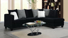 Black Fabric, & Chrome Nail Head Trim Accents, Multi-Color Contrasting Pillows, Removeable Back Pillows and Seat Cushions, High Density Foam Cushions, Equipped with Side Hook, Faux Fur Accent Pillows, & Black Wood Legs