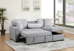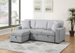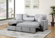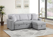 Light Gray Chenille Fabric Seat Cushions, Corduroy Back Cushions, USB Charging Ports, Hideaway Pullout Bed, Light Gray Accent Matching Pillows, Chaise Storage Squared Arms