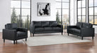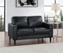 Black Gel Leather, High Density Foam Cushion, Squared Arms, Removeable Seat & Back Cushions, Black Plastic Twisted Legs