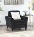 Black Woven Fabric, Half Roll Arms, Oversized Seat Cushions, High Dense Foam Seating & Back, Ivory & Black Accent Pillows