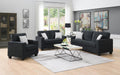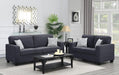 Charcoal Gray Woven Fabric, Teddy Bear Fabric, Squared Arms, High Density Foam Cushion, Removable Seat Cushions, Plastic Feet, & Sewn on Back Cushions