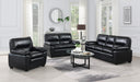 Black Air Gel Leather, Pillowtop Arms & Back, High Density Seat Cushions, Sewn On Seat Cushions, Black Plastic Legs, Removeable Back