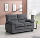 Charcoal Gray Chanel Fabric, Sewn On Seat and Back Cushion, Black Plastic Legs, Pillow Top Arms, Removable Backs for Easy Delivery