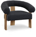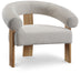 Give your room a distinctly modish look when you bring home this Winston boucle fabric accent chair. This handsome chair has a true mid-century modern design with its rounded back and wooden frame. Boucle fabric is soft to the touch and durable too, so it gives the chair longevity and resistance to damage. Solid wooden legs form a strong foundation for this pretty seat that's perfect for the living room, bedroom or other area.